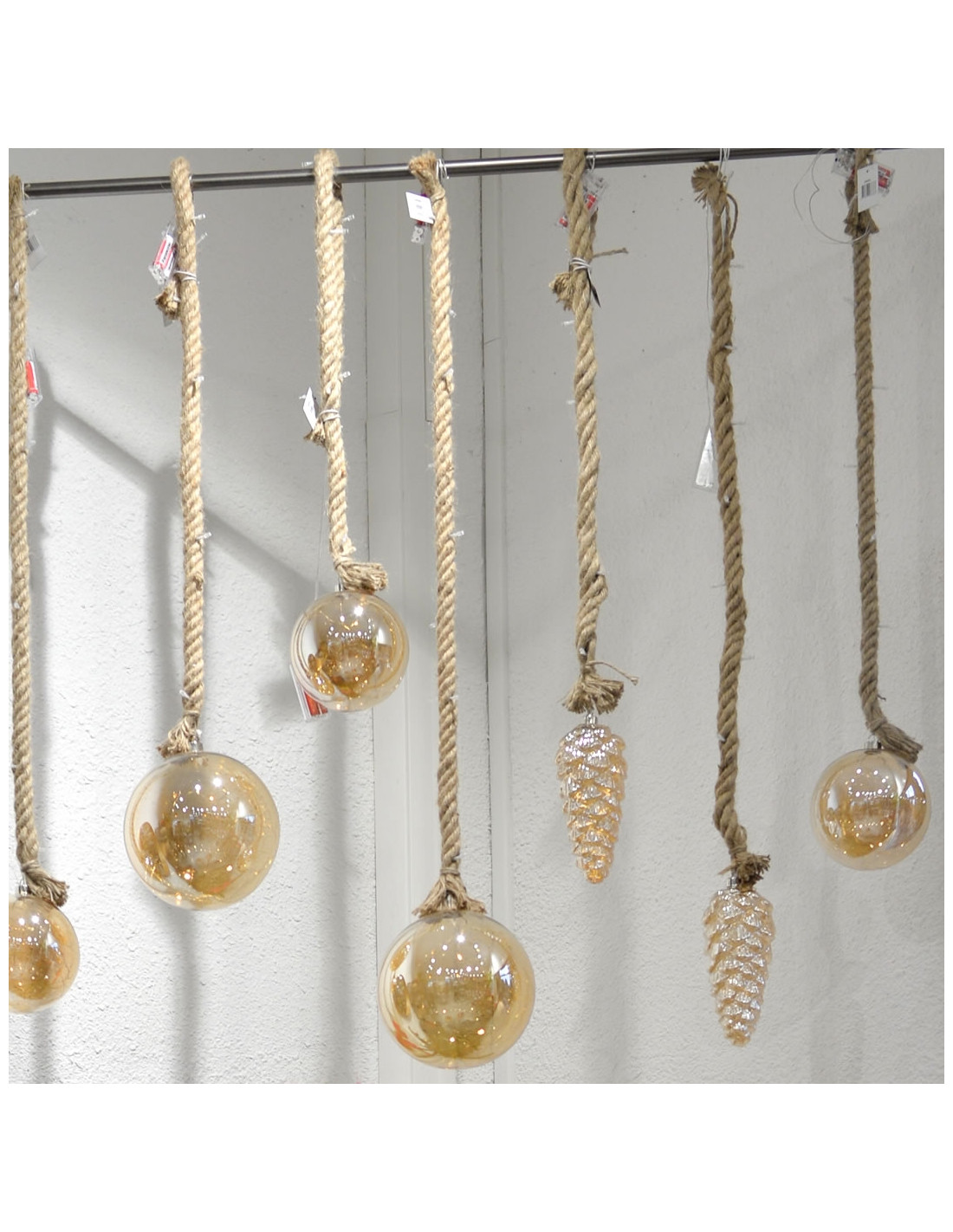 En forme de boule ou pomme de pin, une corde à suspendre avec des lumières led incorporées . (2 piles AA fournies avec la guirlande ).